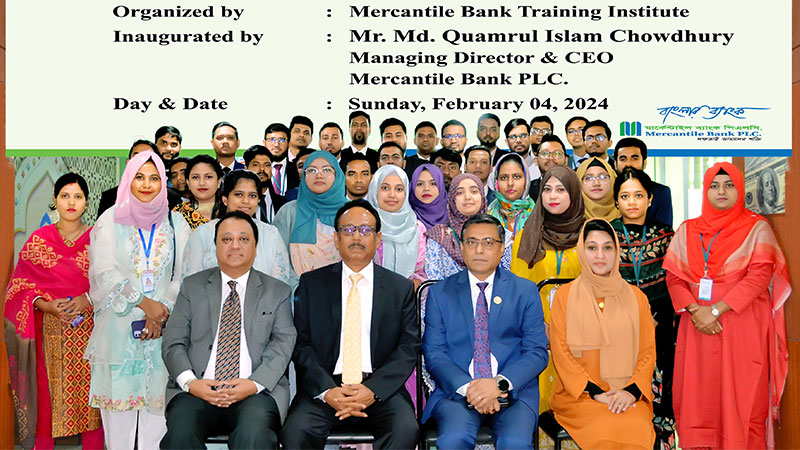 মার্কেন্টাইল ব্যাংকের ট্রেইনি অ্যাসিসটেন্ট অফিসারদের চতুর্থ ধাপের দুই সপ্তাহ মেয়াদী বুনিয়াদি প্রশিক্ষণ সম্প্রতি শুরু হয়েছে। প্রশিক্ষণে ব্যাংকের বিভিন্ন শাখার ৩৭ জন কর্মকর্তা অংশ নেন।