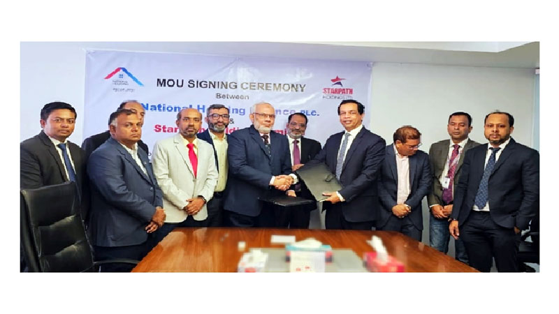 বেসরকারি খাতের স্বনামধন্য আর্থিক প্রতিষ্ঠান ন্যাশনাল হাউজিং ফাইন্যান্স পিএলসি ও স্বনামধন্য ডেভেলপার কোম্পানি স্টারপাথ হোল্ডিংস লিমিটেডের মধ্যে সম্প্রতি বুধবার (১৪ ফেব্রুয়ারি) এক সমঝোতা চুক্তি সাক্ষরিত হয়েছে।