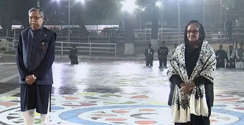 রাষ্ট্রপতি মো. সাহাবুদ্দিন ও প্রধানমন্ত্রী শেখ হাসিনা মহান শহীদ দিবস ও আন্তর্জাতিক মাতৃভাষা দিবসের প্রথম প্রহরে কেন্দ্রীয় শহীদ মিনারে ভাষা শহীদদের প্রতি শ্রদ্ধা জানিয়েছেন।
