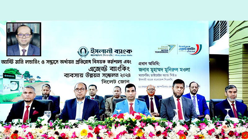 ইসলামী ব্যাংক বাংলাদেশ পিএলসির সিলেট জোনের এজেন্ট ব্যাংকিং ব্যবসায় উন্নয়ন সম্মেলন এবং মানি লন্ডারিং ও সন্ত্রাসে অর্থায়ন প্রতিরোধ বিষয়ক কর্মশালা বৃহস্পতিবার (২২ ফেব্রুয়ারি) স্থানীয় এক হোটেলে অনুষ্ঠিত হয়েছে।