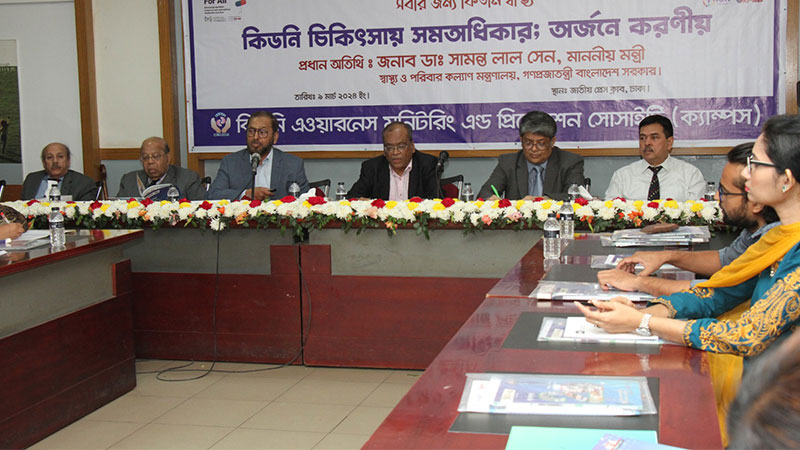 ‘‘বিশ্ব কিডনি দিবস-২০২৪’’ উদযাপন উপলক্ষ্যে আয়োজিত কর্মসূচীর অংশ হিসেবে দেশের শীর্ষস্থানীয় কিডনি বিষয়ক বেসরকারী স্বেচ্ছাসেবী সংস্থা কিডনি এওয়ারনেস মনিটরিং এন্ড প্রিভেনশন সোসাইটি (ক্যাম্পস), শনিবার (৯ মার্চ) জাতীয় প্রেস ক্লাবের তফাজ্জল হোসেন মানিক মিয়া হলে এই গোলটেবিল বৈঠকের আয়োজন করে।
