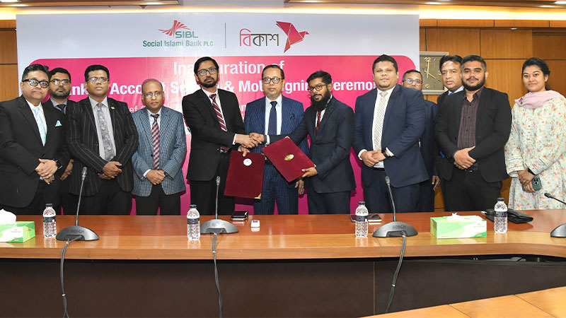 সোশ্যাল ইসলামী ব্যাংক পিএলসি এবং বিকাশের মধ্যে লিঙ্কড অ্যাকাউন্ট সার্ভিস সংক্রান্ত একটি সমঝোতা স্মারক স্বাক্ষরিত হয়েছে। গত বুধবার (৬ মার্চ) ব্যাংকের প্রধান কার্যালয়ে চুক্তি স্বাক্ষর অনুষ্ঠান অনুষ্ঠিত হয়।