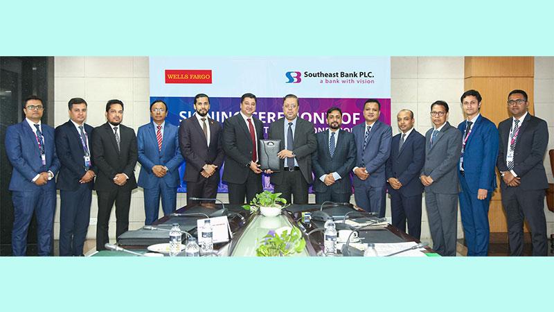 সাউথইস্ট ব্যাংকের পক্ষে ব্যাংকের ব্যবস্থাপনা পরিচালক নুরুদ্দীন মোঃ ছাদেক হোসেন এবং ওয়েলস ফার্গো ব্যাংকের পক্ষে বিবেক শর্মা, সিনিয়র ভাইস প্রেসিডেন্ট, সেক্টর লিড- ফাইন্যান্সিয়াল ইনস্টিটিউশন গ্রুপ, এপেক এবং কর্পোরেট ট্রেড সেলস – সিঙ্গাপুর চুক্তিপত্র বিনিময় করেন।