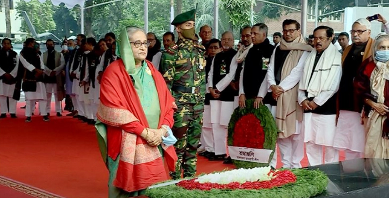 প্রথমে প্রধানমন্ত্রী হিসেবে এবং পরে আওয়ামী লীগ সভাপতি হিসেবে দলের কেন্দ্রীয় নেতাদের নিয়ে শ্রদ্ধা জানান শেখ হাসিনা।