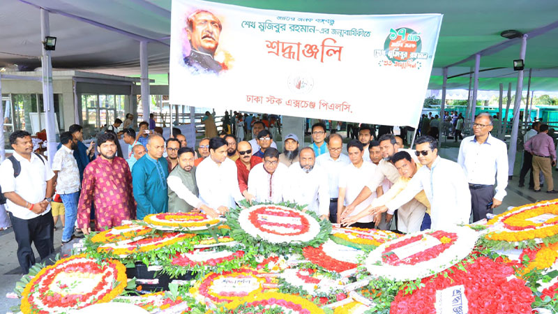 জাতির জনক বঙ্গবন্ধু শেখ মুজিবুর রহমানের জন্ম দিন ১৭ মার্চ ৷ বঙ্গবন্ধু’র জন্ম বার্ষিকী উপলক্ষে আজ (১৭ মার্চ) ঢাকা স্টক এক্সচেঞ্জের চেয়ারম্যান অধ্যাপক ড. হাফিজ মুহম্মদ হাসান বাবু’র নেতৃত্বে পরিচালনা পর্ষদ, ব্যবস্থাপনা কর্তৃপক্ষ ও কর্মকর্তা কর্মচারীগণ ধানমন্ডি ৩২ নম্বরে বঙ্গবন্ধুর প্রতিকৃতিতে পুষ্পার্ঘ্য অর্পণ করে শ্রদ্ধা নিবেদন করেন৷