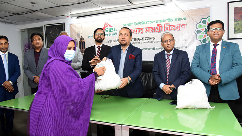 সোশ্যাল ইসলামী ব্যাংক পিএলসি’র (এসআইবিপিএলসি) কর্মচারীদের মাঝে আজ (২১ মার্চ) ইফতার সামগ্রী বিতরণ করা হয়েছে। প্রধান কার্যালয়ে আয়োজিত এই অনুষ্ঠানে প্রধান অতিথি হিসেবে উপস্থিত ছিলেন ব্যাংকের ব্যবস্থাপনা পরিচালক ও প্রধান নির্বাহী জাফর আলম।