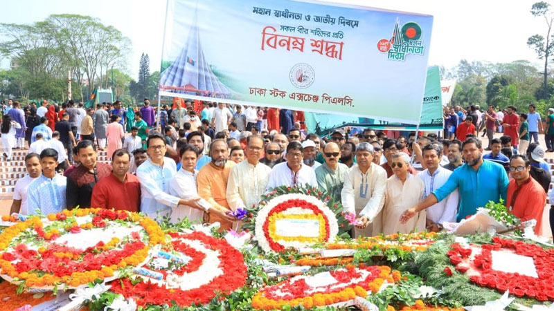 ২৬ মার্চ মহান স্বাধীনতা ও জাতীয় দিবস৷ স্বাধীনতা ও জাতীয় দিবস স্মরণে আজ (২৬ মার্চ) সকাল ১০টায় ঢাকা স্টক এক্সচেঞ্জ পিএলসি’র চেয়ারম্যান অধ্যাপক ড. হাফিজ মুহম্মদ হাসান বাবুর নেতৃত্বে পরিচালনা পর্ষদ, ব্যবস্থাপনা কর্তৃপক্ষ ও কর্মকর্তা কর্মচারীগণ সাভার জাতীয় স্মৃতি সৌধে সকল বীর শহিদের প্রতি পুষ্পার্ঘ্য অর্পন করে শ্রদ্ধা নিবেদন করেন৷