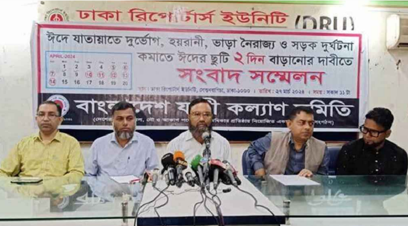 যাত্রীদের দুর্ভোগ কমাতে ঈদের ছুটি আরও দুই দিন বাড়ানোর দাবি জানিয়েছে বাংলাদেশ যাত্রী কল্যাণ সমিতি।