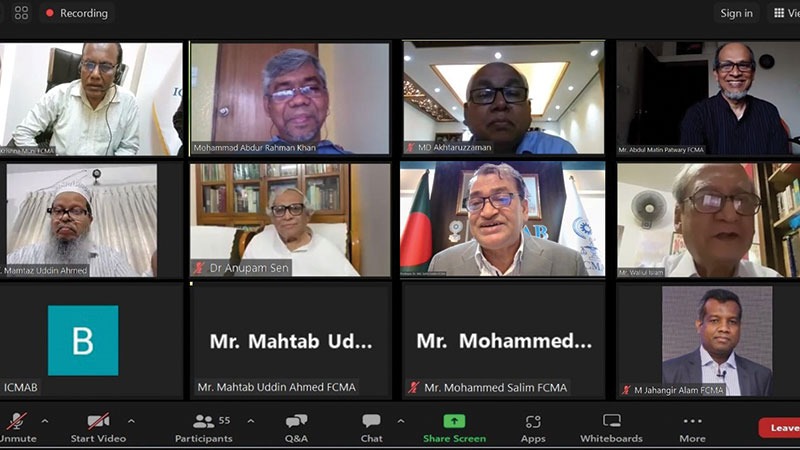 ওয়েবিনারটি সঞ্চালনা করেন বাংলাদেশ নির্বাচন কমিশনের ইভিএম প্রজেক্টের প্রজেক্ট ম্যানেজমেন্ট কনসালটেন্ট নব কৃষ্ণ মুনি এফসিএমএ। স্বাগত বক্তব্য প্রদান করেন আইসিএমএবি’র সাবেক প্রেসিডেন্ট ও সেমিনার এন্ড কনফারেন্স কমিটির চেয়ারম্যান মোঃ আব্দুর রহমান খান এফসিএমএ। সমাপনী বক্তব্য প্রদান করেন আইসিএমএবি’র ভাইস প্রেসিডেন্ট মোঃ আক্তারুজ্জামান এফসিএমএ।