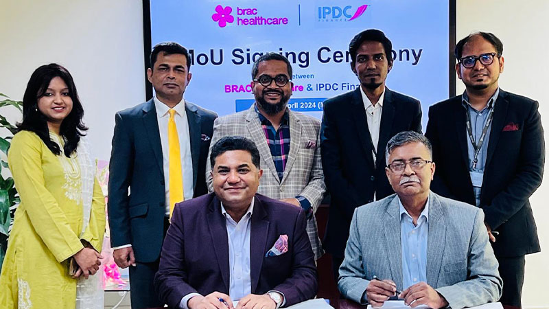 আইপিডিসি ফাইন্যান্স লিমিটেড এবং ব্র্যাক হেলথকেয়ার লিমিটেডের মধ্যে একটি চুক্তি স্বাক্ষর হয়েছে যার অধীনে আইপিডিসির কর্মীবৃন্দ ব্র্যাক হেলথকেয়ার সেন্টার থেকে স্বাস্থ্যসেবায় পাবে বিভিন্ন ধরণের সুবিধা।