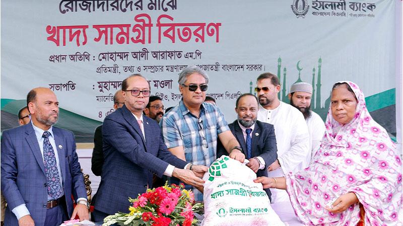 ইসলামী ব্যাংক বাংলাদেশ পিএলসির উদ্যোগে ঢাকায় রোজাদারদের মাঝে খাদ্যসামগ্রী বিতরণ করা হয়েছে। তথ্য ও সম্প্রচার প্রতিমন্ত্রী মোহাম্মদ আলী আরাফাত প্রধান অতিথি হিসেবে বৃহস্পতিবার (৪ এপ্রিল) রাজধানীর মহাখালী আমতলী ঈদগাহ মাঠে এ খাদ্যসামগ্রী বিতরণ করেন।