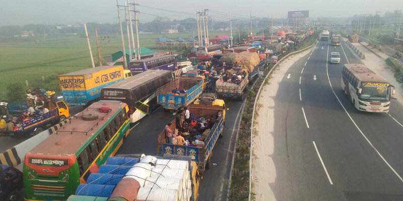 মঙ্গলবার (৯ এপ্রিল) সকালে ঢাকা-টাঙ্গাইল-বঙ্গবন্ধু সেতুপূর্ব মহাসড়কের টাঙ্গাইল সদরের আশেকপুর বাইপাস থেকে সেতু টোলপ্লাজা পর্যন্ত ২৫ কিলোমিটার সড়কে এ যানজটের সৃষ্টি হয়েছে।