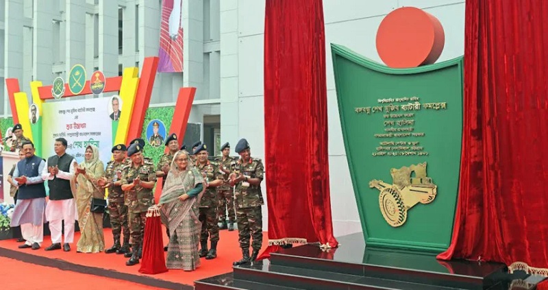 চট্টগ্রামের হালিশহর সেনানিবাসে আর্টিলারি সেন্টার ও স্কুলে নবনির্মিত ‘বঙ্গবন্ধু শেখ মুজিব ব্যাটারী কমপ্লেক্স’ এর উদ্বোধন করেছেন প্রধানমন্ত্রী শেখ হাসিনা ।