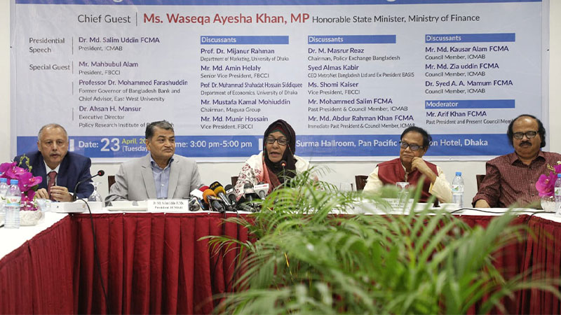 জাতীয় বাজেট ঘোষণার পূর্ব প্রস্তুতিতে সরকারের জন্য নীতি সুপারিশ তৈরি করার লক্ষ্যে দি ইনস্টিটিউট অব কস্ট এন্ড ম্যানেজমেন্ট অ্যাকাউন্ট্যান্টস অব বাংলাদেশ (আইসিএমএবি) ২০২৪-২৫ অর্থ বছরের জাতীয় বাজেটের উপর এক গুরুত্বপূর্ণ গোলটেবিল আলোচনা সভার আয়োজন করেছে। আয়োজনটি মঙ্গলবার (২৩ এপ্রিল) প্যান প্যাসিফিক সোনারগাঁও হোটেলে অনুষ্ঠিত হয়।