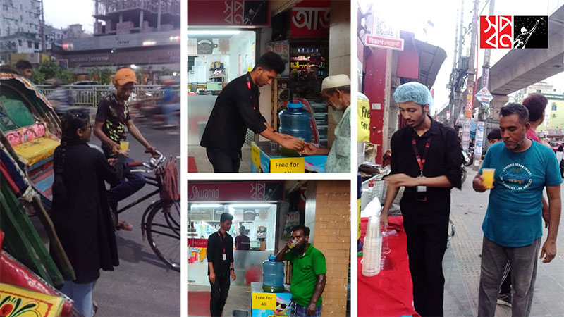 তীব্র গরমে স্বপ্নতে পথচারীদের জন্য ফ্রি শরবত বিতরণ