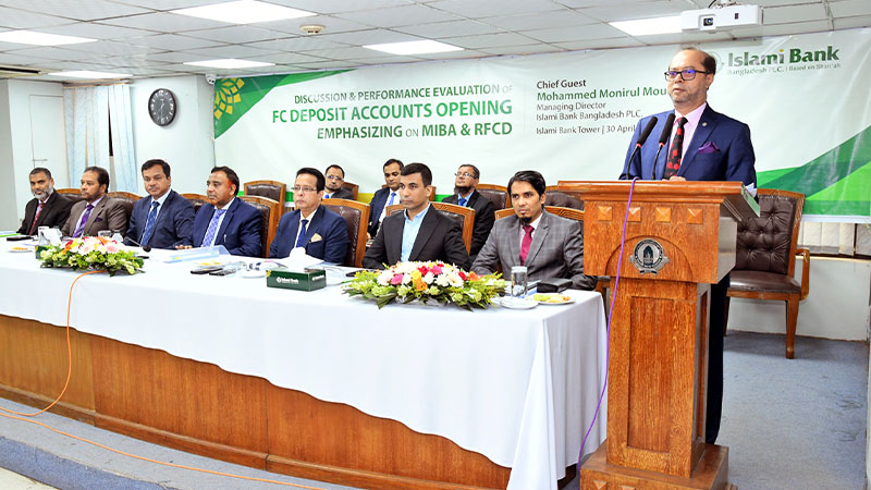ইসলামী ব্যাংক বাংলাদেশ পিএলসির উদোগে বৈদেশিক মুদ্রা জমা বিষয়ক আলোচনা সভা মঙ্গলবার (৩০ এপ্রিল) ইসলামী ব্যাংক টাওয়ারে অনুষ্ঠিত হয়েছে।