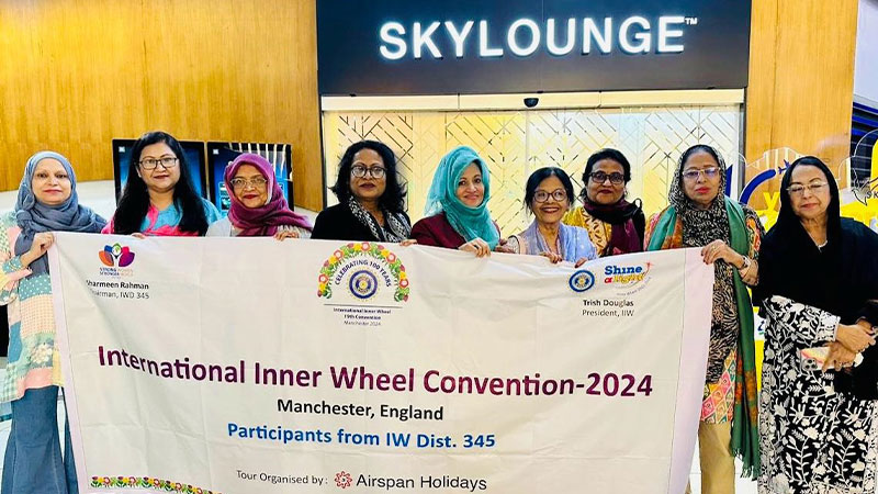 আন্তর্জাতিক স্বেচ্ছাসেবী নারী সংগঠন ইনার হুইল’র শতবার্ষিকী উদযাপন উপলক্ষ্যে অনুষ্ঠিতব্য ১৯তম কনভেনশনে অংশ নিতে ইনার হুইল জেলা-৩৪৫ বাংলাদেশ থেকে ১৫ সদস্যের একটি প্রতিনিধি দল ম্যানচেস্টারের উদ্দেশ্যে কাতার এয়ারওয়েজের ফ্লাইটে ঢাকা ত্যাগ করেছে।