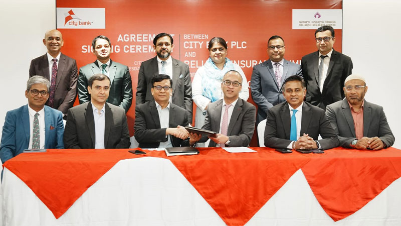 ব্যাংকাসুরেন্স ব্যবসার অধীনে নন-লাইফ ইন্স্যুরেন্স পলিসি বিক্রয় শুরু করার লক্ষ্যে সিটি ব্যাংক, রিলায়েন্স ইন্স্যুরেন্স লিমিটেডের সাথে সম্প্রতি একটি চুক্তি স্বাক্ষর করেছে। চুক্তি স্বাক্ষর অনুষ্ঠানটি সিটি ব্যাংকের প্রধান কার্যালয়ে অনুষ্ঠিত হয়।