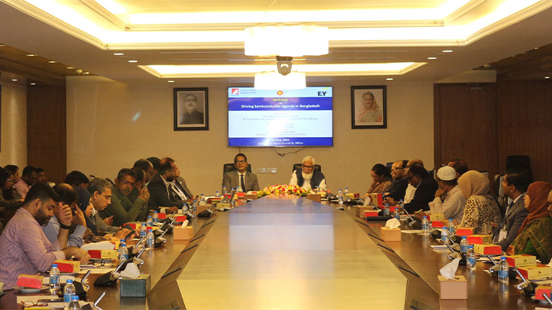বৃহস্পতিবার (১৬ মে) বাংলাদেশ বিনিয়োগ উন্নয়ন কর্তৃপক্ষের (বিডা) কনফারেন্স হলে, বিডা ও আর্নস্ট অ্যান্ড ইয়াং এলএলপি’র (Ernst & Young LLP) যৌথ আয়োজনে অনুষ্ঠিত “দ্যা সেমিকন্ডাক্টর ইকোসিস্টেম ইন বাংলাদেশ” শীর্ষক কর্মশালায় প্রধান অতিথির বক্তব্যে তিনি এ কথা বলেন। কর্মশালায় সভপাতিত্ব করেন বিডার নির্বাহী চেয়ারম্যান (সিনিয়র সচিব) লোকমান হোসেন মিয়া।
