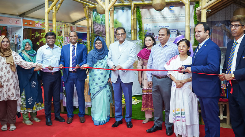 এসএমই ফাউন্ডেশন কর্তৃক আয়োজিত ১১তম জাতীয় এসএমই বাণিজ্যমেলায় বাংলাদেশের পার্ব্যত্য অঞ্চলের নারী উদ্যোক্তাদের তৈরি ঐতিহ্যবাহী তাঁত পণ্যের প্রচার, প্রসার এবং বাজার সৃষ্টিতে সহায়তা দিচ্ছে ব্র্যাক ব্যাংক ও এসএমই ফাউন্ডেশন।