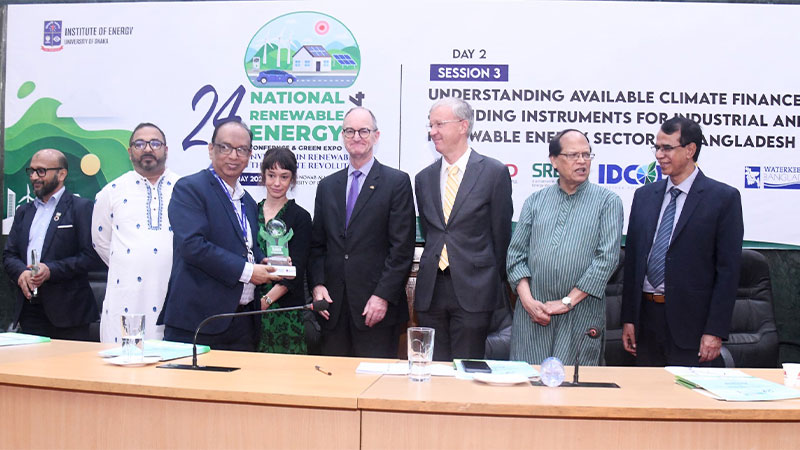 যমুনা ব্যাংকের সিনিয়র ভাইস প্রেসিডেন্ট এবং সাসটেইনেবল ফাইন্যান্স ইউনিটের প্রধান মোঃ প্রশান্ত সমীর ব্যাংকের পক্ষ থেকে পুরস্কার গ্রহণ করেছেন।