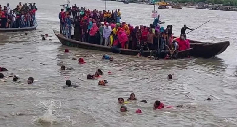 রবিবার মোংলা নদীর ঘাটে অতিরিক্ত যাত্রী তোলার কারণে নৌকা ডুবে যায়।