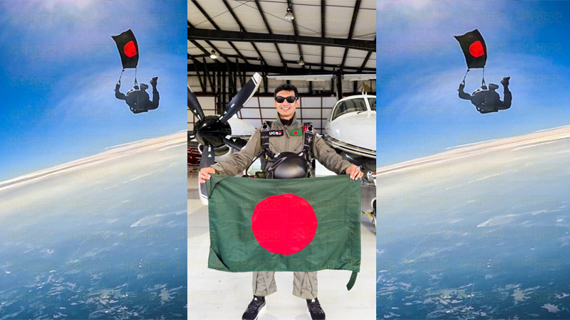 লাল-সবুজের পতাকা নিয়ে ৪১ হাজার ফুট উঁচ্চতায় উড়ে যাওয়া বিমান থেকে লাফ দিয়ে অনন্য এক বিশ্ব রেকর্ড গড়লেন বাংলাদেশি যুবক আশিক চৌধুরী। যুক্তরাষ্ট্রের মেমফিসের এয়ারফিল্ডে শনিবার বাংলাদেশ সময় রাত ৯টার দিকে স্কাইডাইভ করেন তিনি।