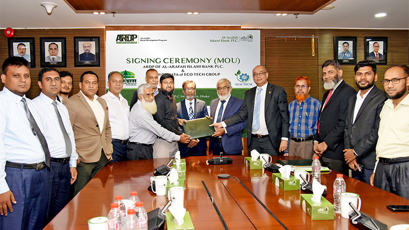 আল-আরাফাহ ইসলামী ব্যাংক (এআইবি) পিএলসি ও ইকোটেক অর্গানিক গার্ডেন লিমিটেডের মধ্যে একটি সমঝোতা চুক্তি স্বাক্ষরিত হয়েছে। সোমবার (২৭ মে) ব্যাংকের প্রধান কার্যালয়ে আয়োজিত চুক্তি স্বাক্ষর অনুষ্ঠানে প্রধান অতিথি হিসেবে উপস্থিত ছিলেন ব্যাংকের ব্যবস্থাপনা পরিচালক (চলতি দায়িত্ব) শাব্বির আহমেদ।