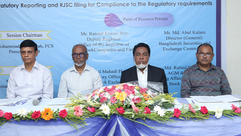 ইনস্টিটিউট অব চার্টার্ড সেক্রেটারীজ অব বাংলাদেশ (আইসিএসবি) “সংবিধিবদ্ধ রিপোর্টিং, রেগুলেটরি প্রয়োজনীয়তা এবং আরজেএসসি ফাইলিং” বিষয়ক একটি প্রশিক্ষণ কর্মসূচির আয়োজন করেছে। শনিবার (২৫ মে) বাংলা মোটরে অবস্থিত আইসিএসবি অফিস প্রাঙ্গণে কর্মসূচিটি অনুষ্ঠিত হয়।