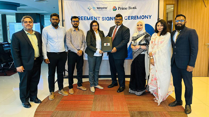 এদিন চুক্তিতে সই করেন প্রাইম ব্যাংকের ডেপুটি ম্যানেজিং ডিরেক্টর মো. নাজিম এ চৌধুরী এবং ডিটেমপেট লিমিটেডের কো ফাউন্ডার এবং প্রধান নির্বাহী কর্মকর্তা (সিইও) মোহ্সিনা মুন্না।