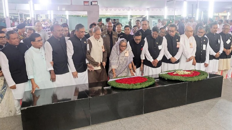 বঙ্গবন্ধুর প্রতিকৃতিতে প্রধানমন্ত্রীর শ্রদ্ধা