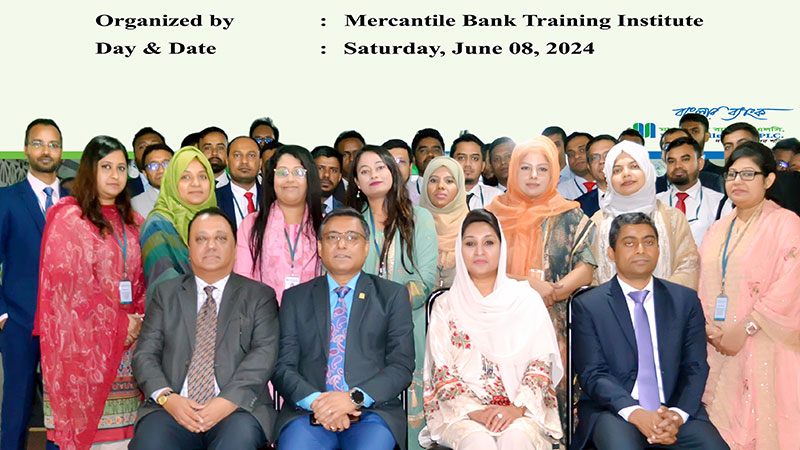 মার্কেন্টাইল ব্যাংকে সম্প্রতি ‘ক্যাশ ম্যানেজমেন্ট অ্যান্ড জেনারেল ব্যাংকিং অপারেশন্স’ বিষয়ক দিনব্যাপী প্রশিক্ষণ অনুষ্ঠিত হয়েছে। মার্কেন্টাইল ব্যাংক ট্রেনিং ইনস্টিটিউট আয়োজিত হয় এ প্রশিক্ষণ।