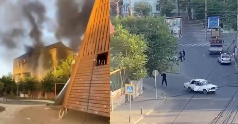 আরেকটি ভিডিওতে দেখা যায়, হামলা চালানো ভবনগুলোতে আগুন জ্বলছে।