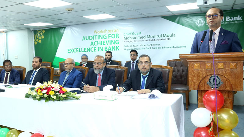 ইসলামী ব্যাংক ট্রেনিং অ্যান্ড রিসার্চ একাডেমি’র (আইবিটিআরএ) আয়োজনে ‘অডিটিং ফর অ্যাচিভিং এক্সিলেন্স ইন ব্যাংক’ শীর্ষক দিনব্যাপী এক কর্মশালা অনুষ্ঠিত হয়েছে। সোমবার (২৪ জুন) ইসলামী ব্যাংক টাওয়ারে কর্মশালাটি অনুষ্ঠিত হয়।