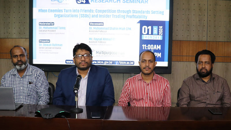 বাংলাদেশ ইন্সটিটিউট অব ক্যাপিটাল মার্কেটের (বিআইসিএম) রিসার্চ সেমিনার-৩৪ অনুষ্ঠিত হয়েছে। সোমবার (০১ জুলাই) ইন্সটিটিউটের মাল্টিপারপাস হলে সেমিনারটি অনুষ্ঠিত হয়।