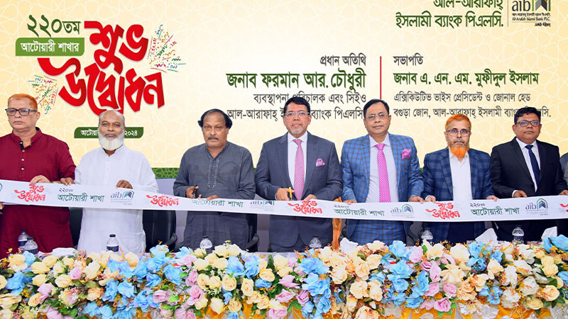 পঞ্চগড়ের আটোয়ারীতে আল-আরাফাহ্ ইসলামী ব্যাংক পিএলসির (এআইবিপিএলসি) ২২০তম শাখার কার্যক্রম আনুষ্ঠানিকভাবে শুরু হয়েছে। বৃহস্পতিবার (৪ জুলাই) ব্যাংকের ব্যবস্থাপনা পরিচালক ও সিইও ফরমান আর চৌধুরী প্রধান অতিথি হিসেবে শাখাটি উদ্বোধন করেন।