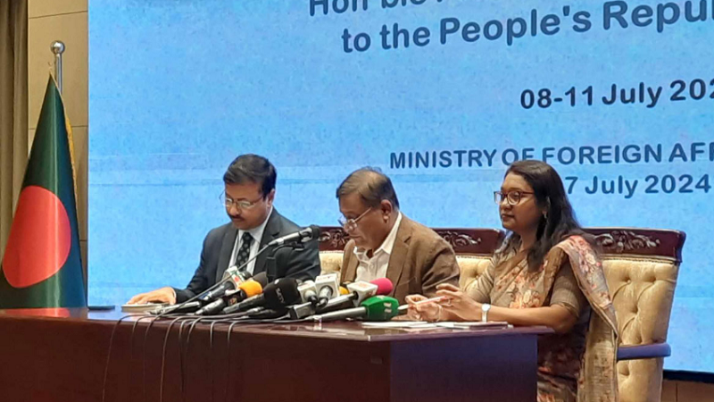 পররাষ্ট্রমন্ত্রী জানান, চীনের প্রধানমন্ত্রী লি কিয়াংয়ের আমন্ত্রণে প্রধানমন্ত্রী ৮ থেকে ১১ জুলাই চীন সফর করবেন। প্রধানমন্ত্রীর সফরে প্রায় ২০টির মতো সমঝোতা স্মারক সই হওয়ার সম্ভাবনা রয়েছে। প্রধানমন্ত্রীর সফরে কিছু প্রকল্প ঘোষণা করা হবে।