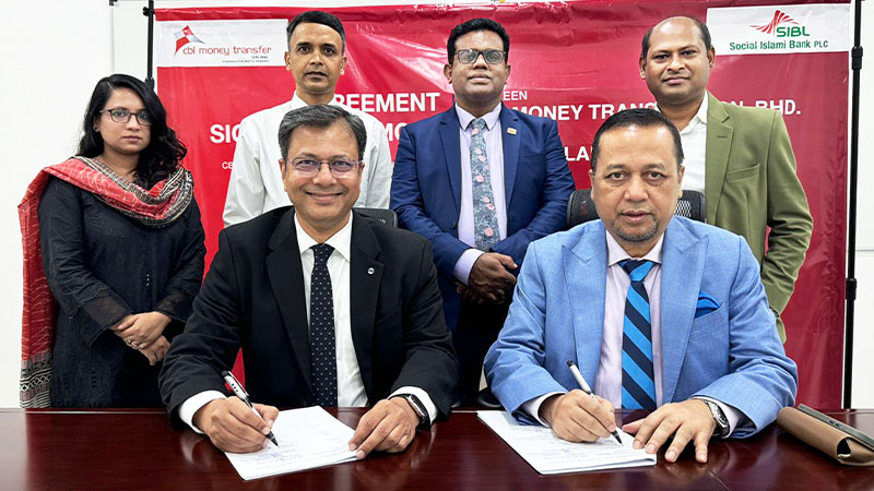 সোশ্যাল ইসলামী ব্যাংক পিএলসি (এসআইবিপিএলসি) এবং মালয়েশিয়ার সিবিএল মানি ট্রান্সফার এসডিএন. বিএইচডি. এর মধ্যে একটি রেমিট্যান্স চুক্তি স্বাক্ষরিত হয়েছে। মঙ্গলবার (৯ জুলাই) মালয়েশিয়ার কুয়ালালামপুরে সিবিএল’র প্রধান কার্যালয়ে চুক্তিটি স্বাক্ষর করা হয়।