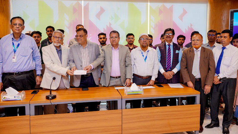 প্রাইম ইসলামী লাইফ, ড্যাফোডিলের প্রো-ভিসি প্রফেসর ড. এস.এম মাহবুব উল হক মজুমদারের নিকট টাকা হস্তান্তর করেছে।