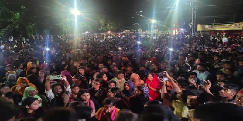 রোববার দিবাগত রাত ১১টার দিকে কয়েকশ শিক্ষার্থী হল থেকে বের হয়ে রাজু ভাস্কর্যের সামনে জড়ো হন।