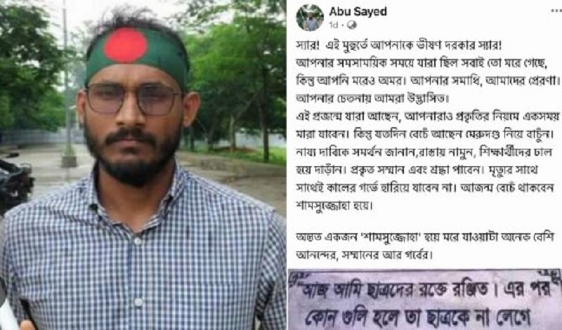 ‘যতদিন বেঁচে আছেন মেরুদণ্ড নিয়ে বাঁচুন’, নিহত সাঈদের শেষ পোস্ট