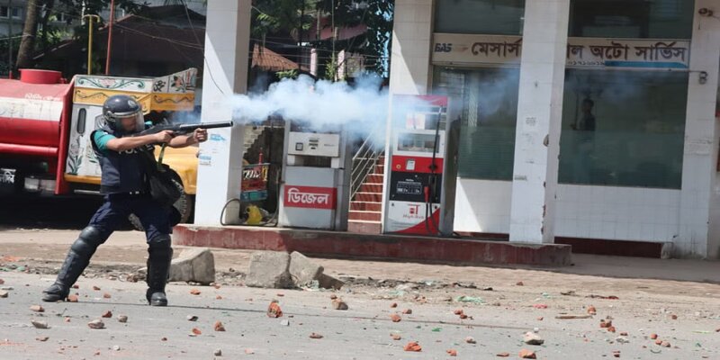 কোটা সংস্কার আন্দোলনকারীরা সামনে এগোতে থাকলে আওয়ামী লীগ ও এর অঙ্গ সংগঠনের নেতাকর্মী, পুলিশ এবং বিজিবি সদস্যরা তাদের ধাওয়া দেয়। শুরু হয় ইটপাটকেল নিক্ষেপ। আন্দোলনকারীরা মহাসড়কে আগুন জ্বালিয়ে বিক্ষোভ দেখাতে থাকেন। পুলিশ সদস্যরাও আন্দোলনকারীদের লক্ষ্য করে টিয়ারসেল নিক্ষেপ ও গুলি চালান।