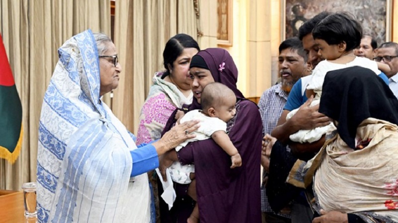 এ সময় স্বজন হারানো পরিবারের সদস্যদের উদ্দেশ্য করে শেখ হাসিনা বলেন, আমি আপনাদের বেদনা বুঝি। আমাকে প্রতিনিয়ত বাপ-মা-ভাই হারানোর বেদনা নিয়ে চলতে হয়। বাপ-মায়ের লাশটাও দেখতে পারিনি, দেশে ফিরতে পারিনি। ৬ বছর পর দেশে এসেছি। তারপর যখন এসেছি সারা দেশ ঘুরেছি। কারণ আমার বাবা বলত, দুঃখি মানুষের মুখে হাসি ফুটাতে হবে। আমি সেই কাজটাই করার চেষ্টা করছি।
