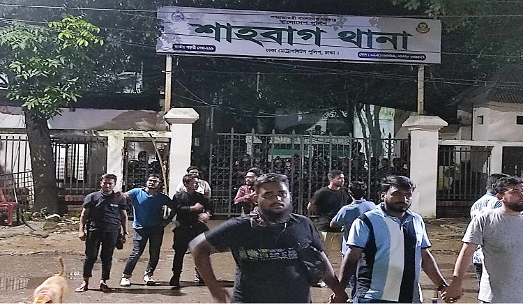 অন্যদিকে সন্ধ্যায় কেন্দ্রীয় শহীদ মিনার থেকে আন্দোলনকারীদের ফেরার সময় শাহবাগ থানার পুলিশ হামলার আশংকায় থানা ক্যাম্পাসের ভেতর আশ্রয় নেয়। এ সময় থানার মূল ফটক বন্ধ করে দেওয়া হয়। আন্দোলনকারীদের কেউ যাতে উতি উৎসাহী হয়ে থানায় হামলা না চালায় তা নিশ্চিত করতে তাদেরই একটি অংশ থানার সামনে মানবঢাল তৈরি করে পাহারা দেন।
