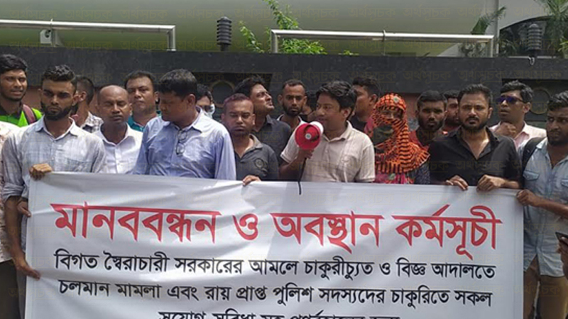 ক্ষমতাচ্যুত আওয়ামিলীগ ও হাসিনা সরকারের আমলে বিভিন্ন কারণে চাকরিচ্যুত পুলিশ সদস্যদের চাকরিতে পুনর্বহাল করে তাদের পোশাক ফিরিয়ে দেওয়ার দাবি জানিয়েছেন চাকরিচ্যুত পুলিশ সদস্যরা। একই সঙ্গে চাকরিতে পুনর্বহাল না করা হলে কঠোর আন্দোলনের হুঁশিয়ারি দিয়েছেন তারা।