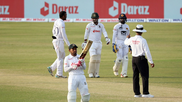 লিডের আশায় চতুর্থ দিন সকালে ব্যাটিংয়ে নামে মুশফিকুর রহিম এবং লিটন দাস। সকালের শুরু থেকেই দেখেশুনে ব্যাটিং করতে থাকেন তারা দুজনে। তৃতীয় দিনের শেষ বিকেলে ৯৮ রানের জুটি গড়েছিলেন লিটন ও মুশফিক। দুটি সিঙ্গেলস নিয়ে জুটির সেঞ্চুরি পূরণ করেন তারা। এদিকে দিনের ষষ্ঠ ওভারে ফিরতে পারতেন মুশফিক। মোহাম্মদ আলির লেংথ ডেলিভারিতে একটু পিছিয়ে খেলার চেষ্টায় বলের লাইন মিস করেন অভিজ্ঞ এই ব্যাটার। বল প্যাডে আঘাত করার পর আবেদন করতেই আঙুল তুলে দেন আম্পায়ার রিচার্ড কেটেলবরো। তবে লিটনের সঙ্গে কথা বলে ২ সেকেন্ড বাকি থাকতে রিভিউ নেন মুশফিক। টিভি রিপ্লেতে দেখা যায় বল বেরিয়ে যেতো স্টাম্পের বাইরে দিয়ে। যার ফলে নিজের সিদ্ধান্ত বদল করতে বাধ্য হন কেটেলবরো।