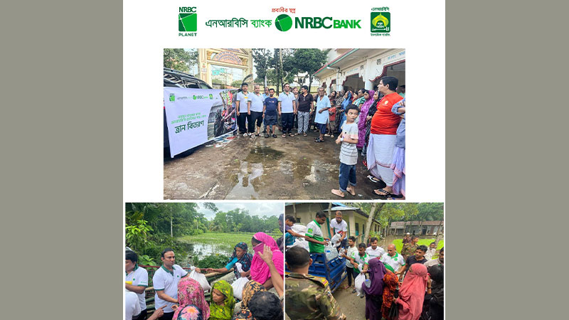 বন্যার্তদের সহযোগিতায় এনআরবিসি ব্যাংক সিএসআর তহবিল থেকে ১ কোটি টাকা এবং পরিচালকদের অনুদান ও কর্মকর্তা-কর্মচারীদের একদিনের বেতনের সমপরিমান অর্থ প্রদান করেছে। এরমধ্যে ৫০ লাখ টাকা প্রধান উপদেষ্টার ত্রাণ তহবিলের অ্যাকাউন্টে জমা করা হয়েছে। বাকী ৫০ লাখ টাকা ব্যাংকের শাখা-উপশাখার মাধ্যমে ক্ষতিগ্রস্থদের মাঝে বিতরণ করা হচ্ছে। পরিচালক এবং কর্মকর্তা-কর্মচারীদের অনুদানের অর্থে ত্রাণসামগ্রী বিতরণ করা হচ্ছে। ফেনীর বিভিন্ন উপজেলায় পরিচালক একেএম মোস্তাফিজুর রহমান এবং নোয়াখালীর বিভিন্ন উপজেলায় পরিচালক লকিয়ত উল্যাহ সরাসরি উপস্থিত থেকে ত্রাণ সহায়তা ও নগদ অর্থ সহায়তা প্রদান করেন। এছাড়া অন্যান্য জেলাগুলোতে প্রধান কার্যালয়ের কর্মকর্তারা এবং ব্যাংকের সংশ্লিষ্ট শাখা-উপশাখার কর্মকর্তারা ত্রাণ সামগ্রী বিতরণ করেন।