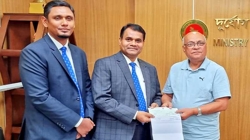চেক হস্তান্তরকালে অন্যান্যদের মধ্যে দুর্যোগ ব্যবস্থাপনা ও ত্রাণ মন্ত্রণালয়ের যুগ্মসচিব অঞ্জন চন্দ্র পাল এবং শাহ্জালাল ইসলামী ব্যাংকের এফএভিপি মোঃ সানাউর রশিদ (সাগর) উপস্থিত ছিলেন।
