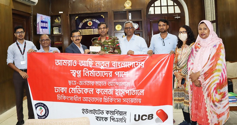 দেশের বেসরকারি শীর্ষস্থানীয় আর্থিক প্রতিষ্ঠান ইউনাইটেড কমার্শিয়াল ব্যাংক (ইউসিবি) সাম্প্রতিক ছাত্র আন্দোলনে আহতদের চিকিৎসা সেবা প্রদানের জন্য ঢাকা মেডিকেল কলেজ হাসপাতালকে আর্থিক সহায়তা প্রদান করেছে। ইউসিবির এই অর্থ-সহায়তা আহতদের চিকিৎসার খরচ মেটাতে ব্যয় হবে।