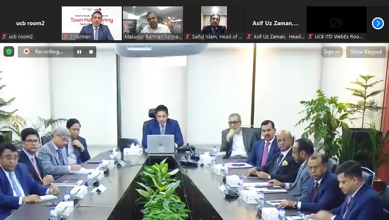 দেশের শীর্ষস্থানীয় বেসরকারি ব্যাংক ইউনাইটেড কমার্শিয়াল ব্যাংক পিএলসির (ইউসিবি) এক টাউন হল সভা অনুষ্ঠিত হয়। ‘ইউনাইটেড ইন ইনটিগ্রিটি, গ্রোয়িং সাসটেইনেবিলি’ এই স্লোগান নিয়ে সোমবার (৯ সেপ্টেম্বর) বিকেলে ভার্চুয়ালি সভাটি অনুষ্ঠিত হয়।